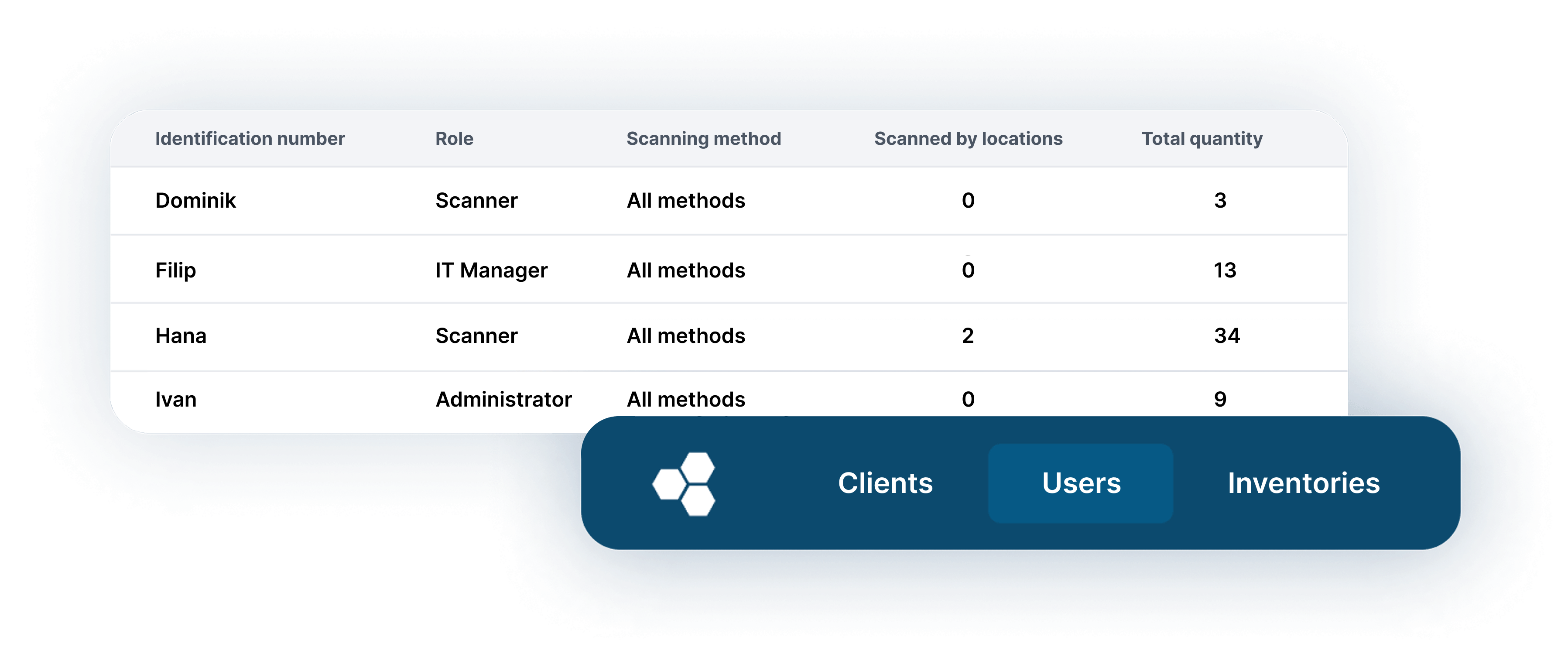 If you have employees on site during inventory who are in different positions and should have greater or lesser rights in the system or should be assigned their own section, you'll list them in your online account in the "Users" tab. They'll then receive an email and set their own password for the software.