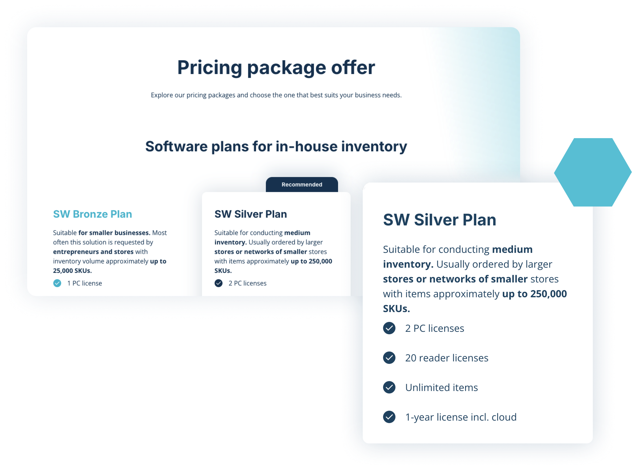 If you have questions, check out the FAQ, section or contact us. Everything is clear and our prepared software is exactly what you need? Choose your plan and optionally equipment for rental and you can start inventory.