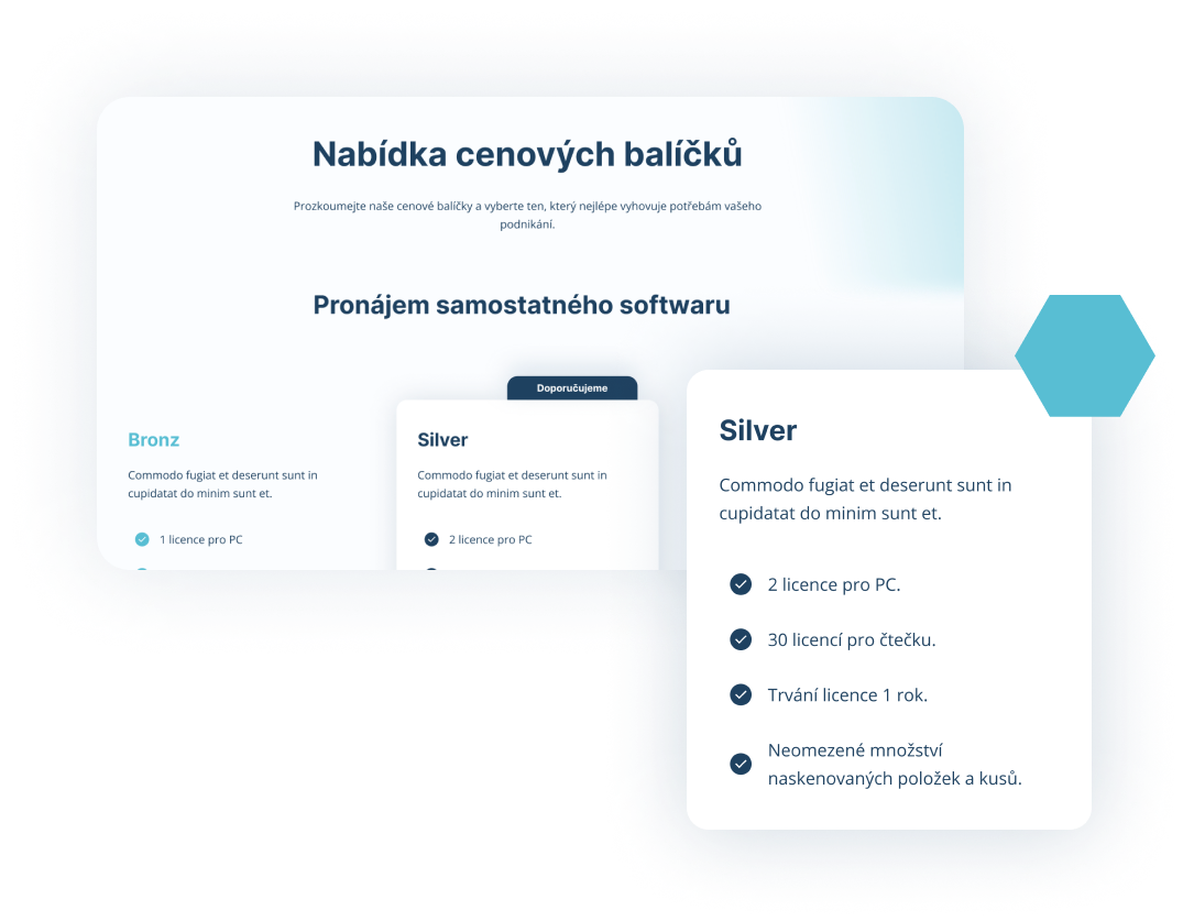 Na výběr máte libovolný počet licencí našeho softwaru pro vaše PC a čtečky a také možnost pronájmu našich prověřených zařízení (hardwaru). Na základě krátké telefonické konzultace vám rádi poradíme, jak vybrat z našich tarifů a zařízení to, co potřebujete přímo vy.